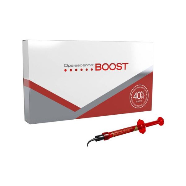 Traitement rapide et puissant avec formulation PF pour réduire la sensibilité et reminéraliser la dent, SANS LAMPE! Une fois activé Opalescence Boost est appliqué directement à partir de la seringue. Il s’étale uniformement et ne coule pas. Sa couleur rouge distincte garantit une parfaite application et une élimination facile et totale. Le temps d’application est de deux à trois applications de 20 minutes, dans la limite de 3 applications par consultation.